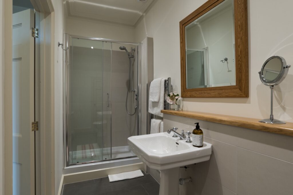 There are six bedrooms in total, four on the 1st floor and two on the 2nd floor. All well appointed with hotel standard beds, excellent pillows and high thread count Egyptian cotton bed linen; and a combination of super king-size, king-size, double and twins rooms. Three of the bedrooms have en-suite facilities and there is also a separate shower room and WC plus a full bathroom with separate shower and WC. Most of the bedrooms have feature fireplaces, original working shutters, windows overlooking the gardens and original artwork.